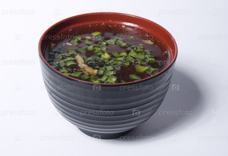 Чашка с супом на белом фоне
