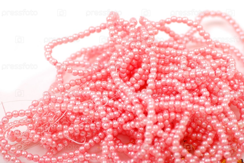 Розовые бусы на белом фоне
