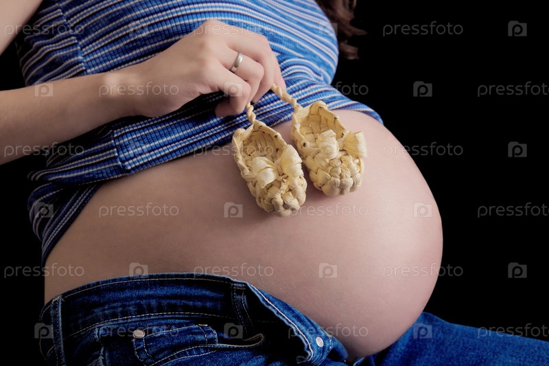 Детские лапоточки на животе беременной женщины