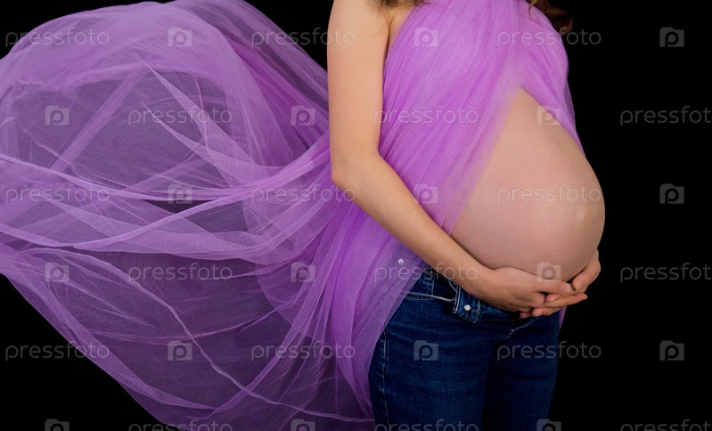 Красивая беременная женщина на ветру