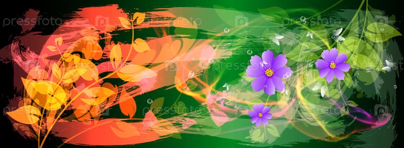 Абстрактный цветочный фон с бабочками и мыльными пузырями. Концепция спа
