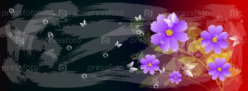 Абстрактный цветочный фон с бабочками и мыльными пузырями. Концепция спа