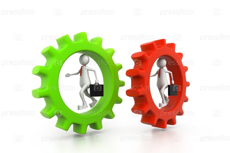 Деловой человек бежит в шестерне. Концепция конкуренции в бизнесе