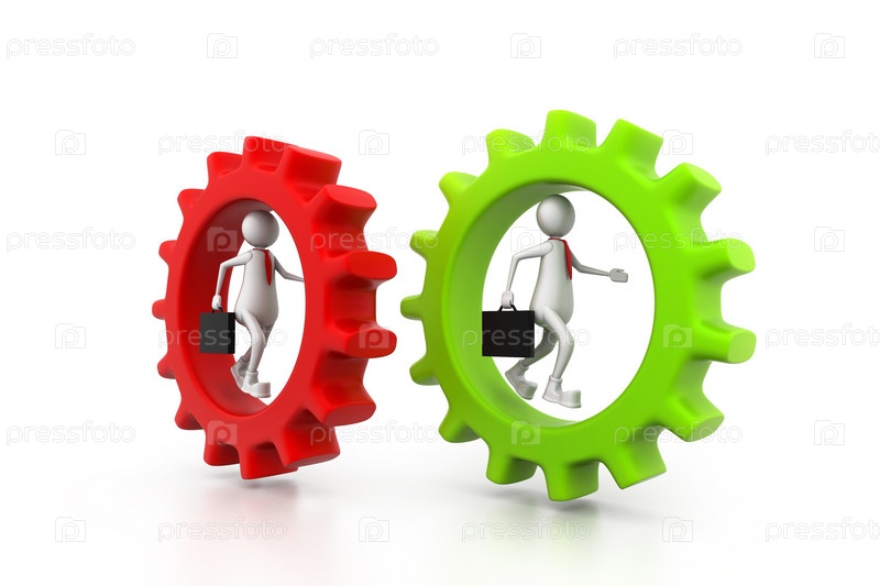 Деловой человек бежит в шестерне. Концепция конкуренции в бизнесе
