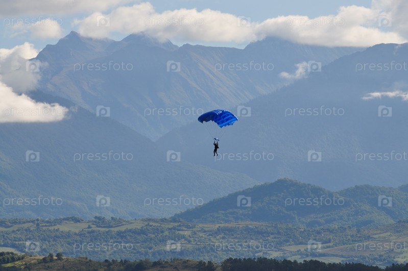 Синий парашют на фоне гор