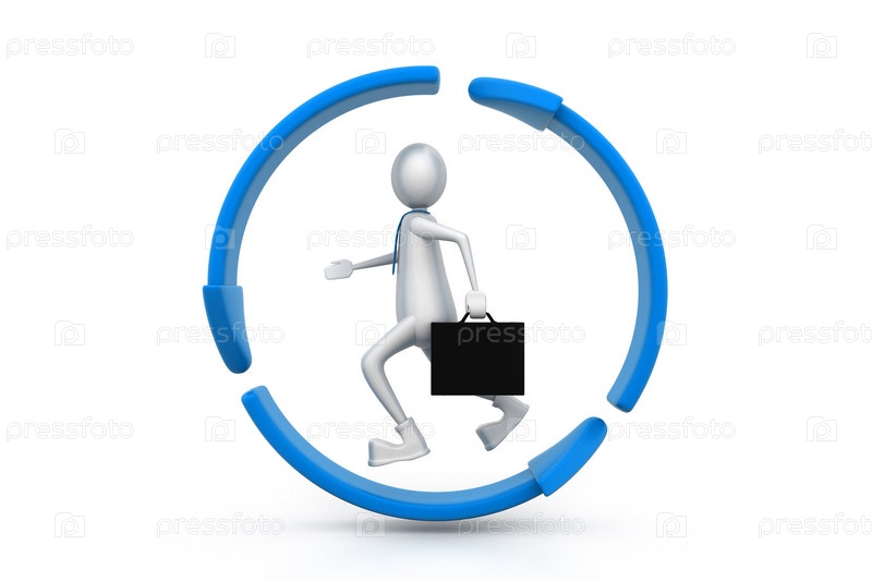 Деловой человек бежит внутри знака переработки