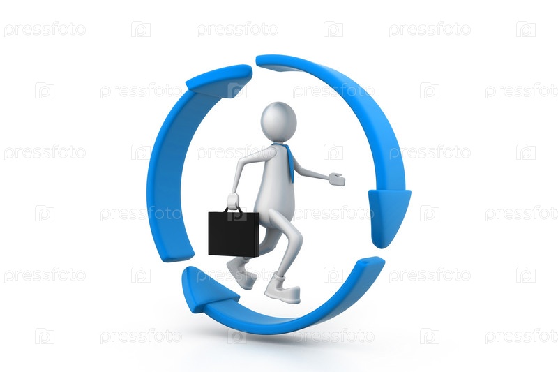 Деловой человек бежит внутри знака переработки