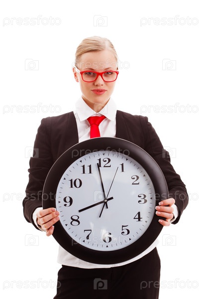 Бизнес-леди держит часы