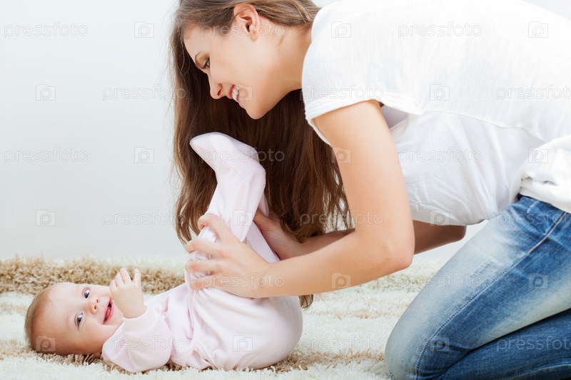 Молодая мать играет с дочерью