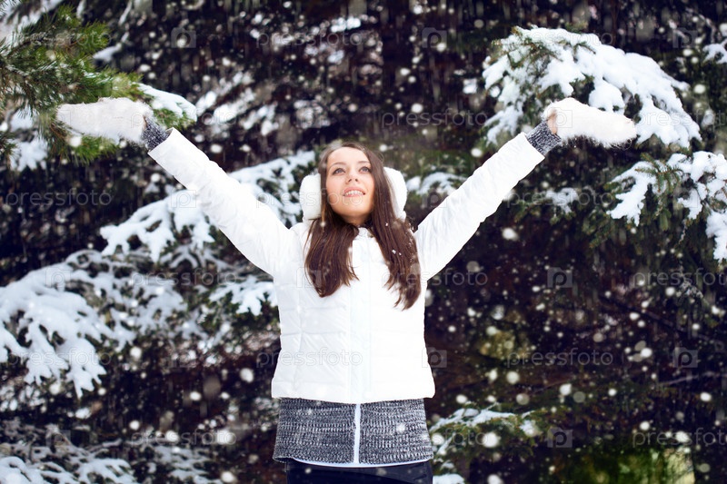 Женщина гуляет в зимнем парке