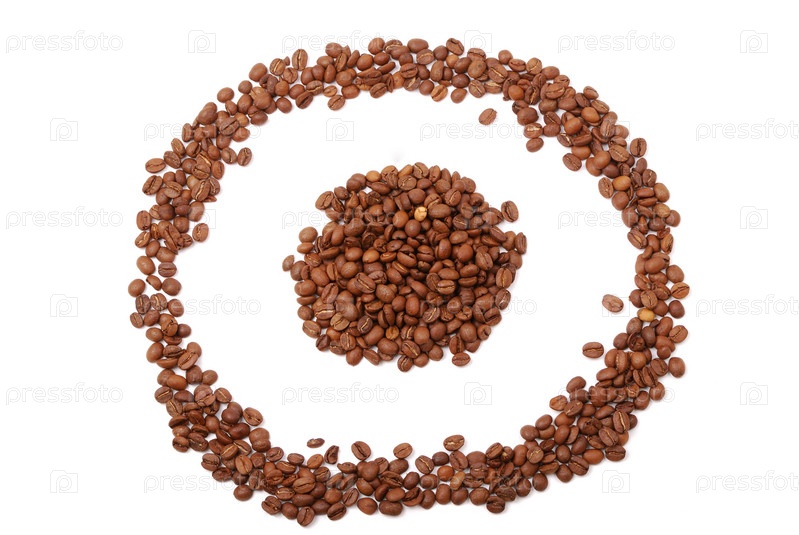 Круг из кофейных зерен на белом фоне