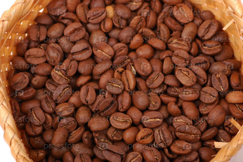 Полная корзинка кофейных зерен крупным планом