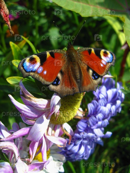 Бабочка Павлиний глаз на цветке