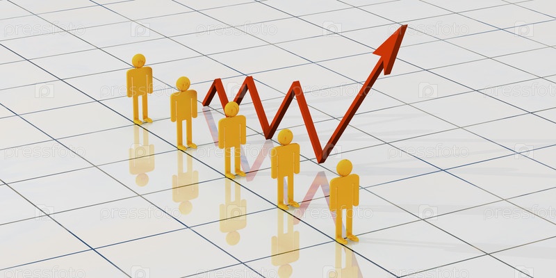 Люди рядом с стрелой в 3D-пространстве