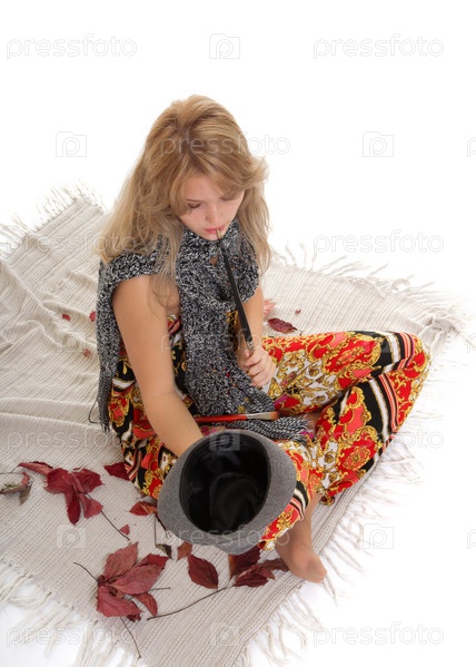 Красивая женщина-художник просит милостыню