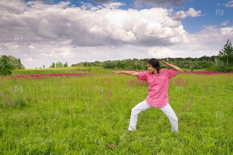 Мужчина развлекается на лугу