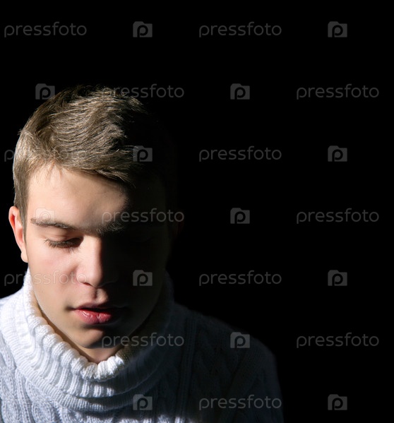 Портрет молодого мужчины на черном фоне, низкий ключ