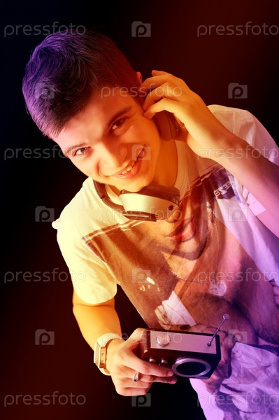 Молодой мужчина слушает радио