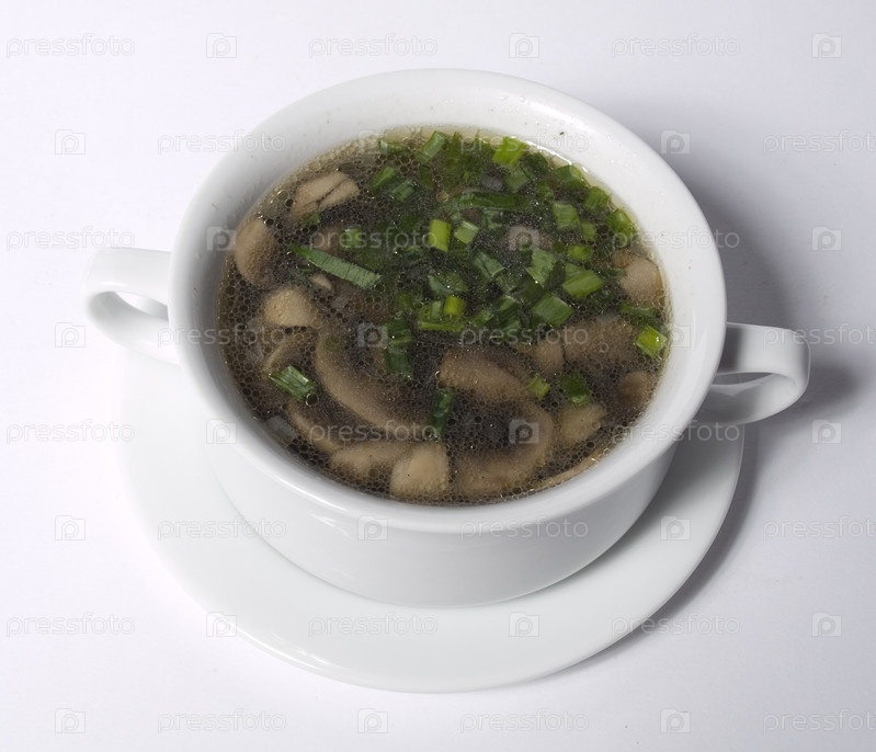 Грибной суп на белом фоне