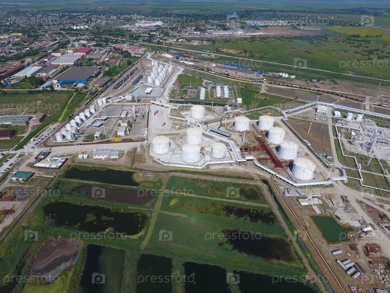 Пейзаж города Славянск на Кубани. Очистные сооружения и нефтеперерабатывающий завод