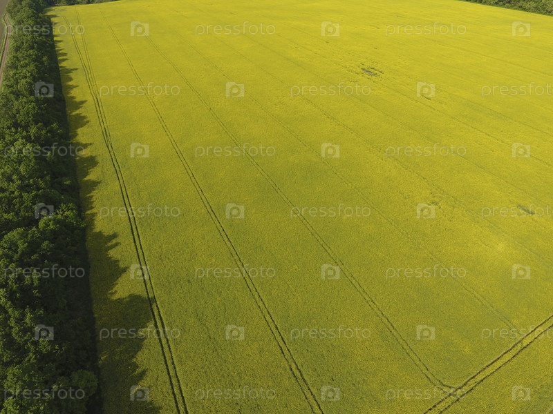 Поле цветения рапса и лесополоса для защиты от ветра