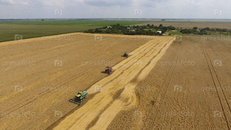 Сбор урожая пшеницы комбайнами
