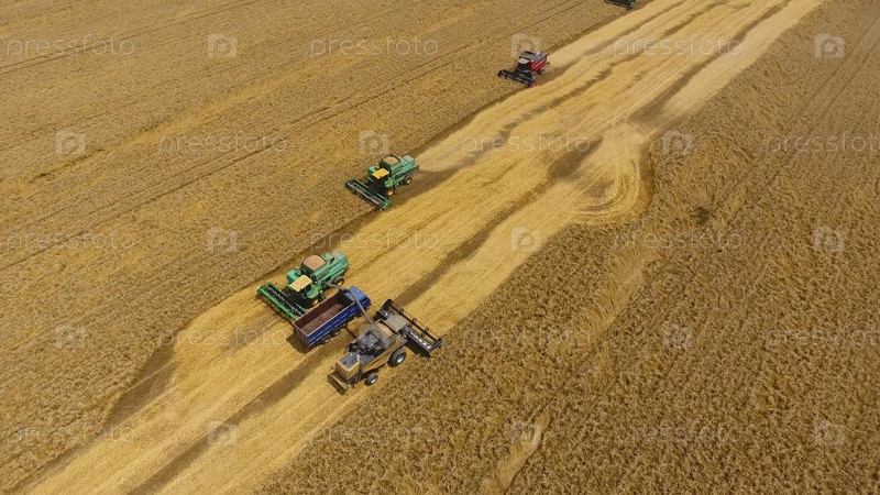 Сбор урожая пшеницы комбайнами