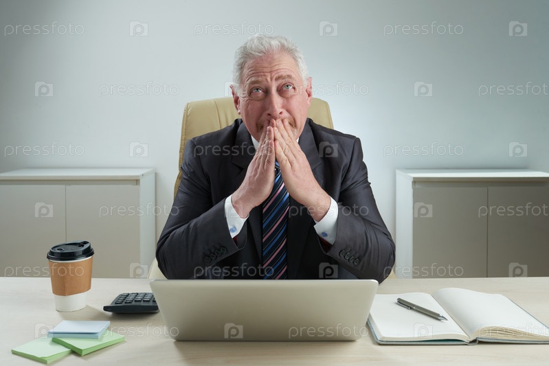 Бизнесмен молится за столом
