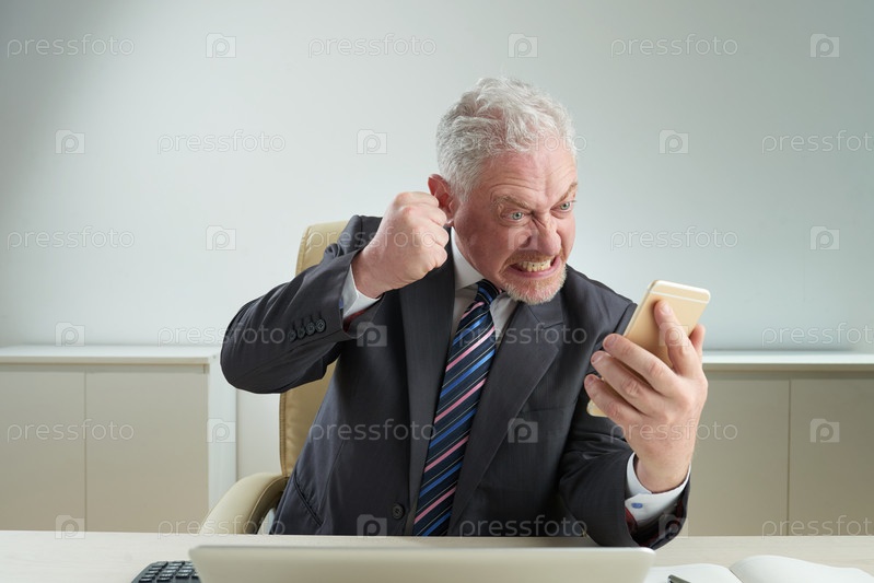 Раздраженный бизнесмен с телефоном