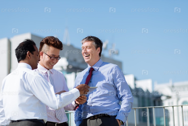Счастливые многонациональные деловые люди на открытом воздухе