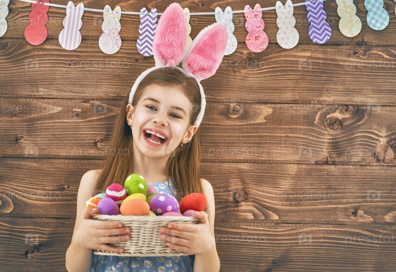 Девочка держит корзину с яйцами