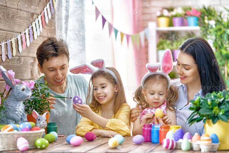 Семья красит яйца