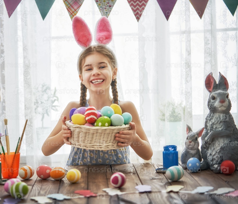 Ребенок с крашеными яйцами