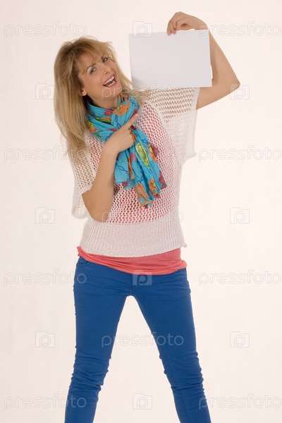 Женщина среднего возраста держит пустой плакат