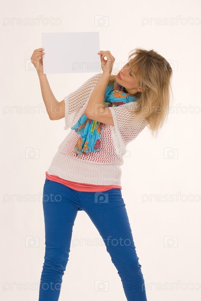 Женщина среднего возраста держит пустой плакат