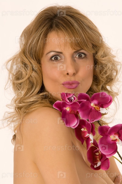Портрет женщины с орхидеей на голой груди