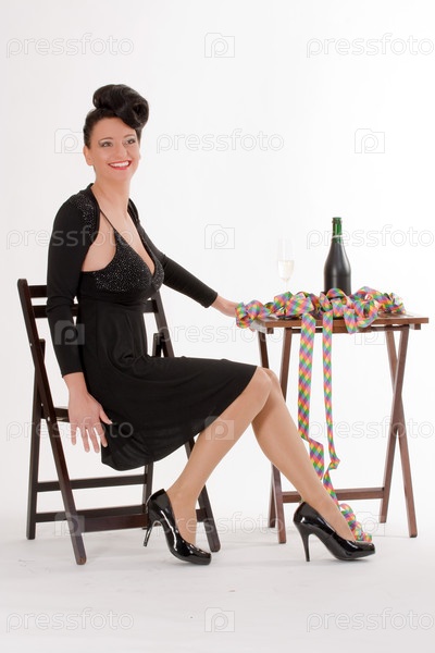 Красивая женщина в черном вечернем платье