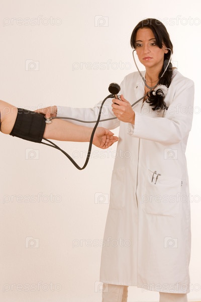 Врач измеряет кровяное давление на руке пациента