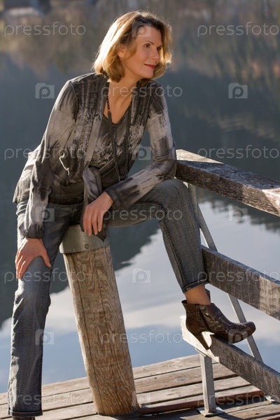 Пожилая женщина у озера