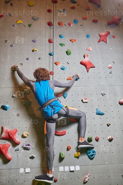 Парень на скалодроме