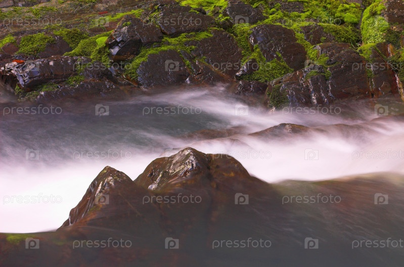 Дикий водопад и мох рядом с ним