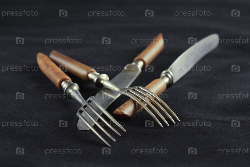 Старые вилки и ножи на столе