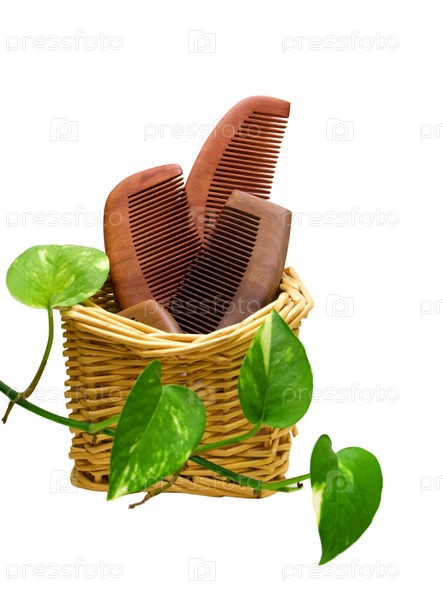 Деревянные расчески в корзине