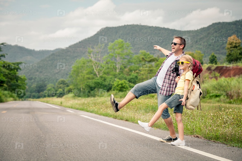 Отец и дочь на дороге