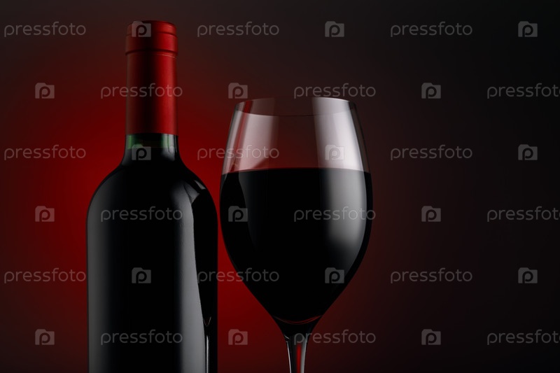 Бутылка красного вина с бокалом