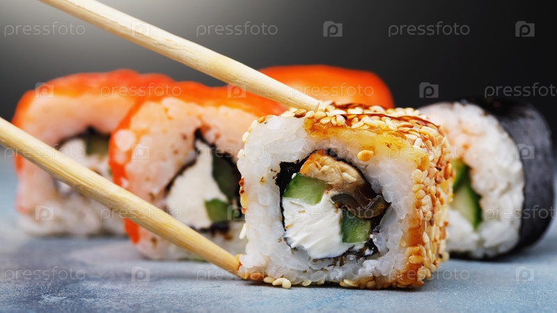 Роллы унаги маки с огурцом, угрем и кунжутом