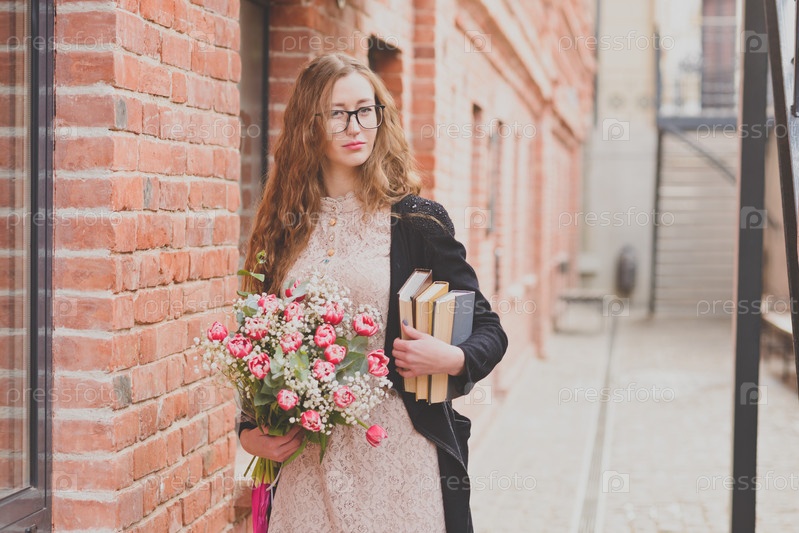 Девушка с букетом цветов