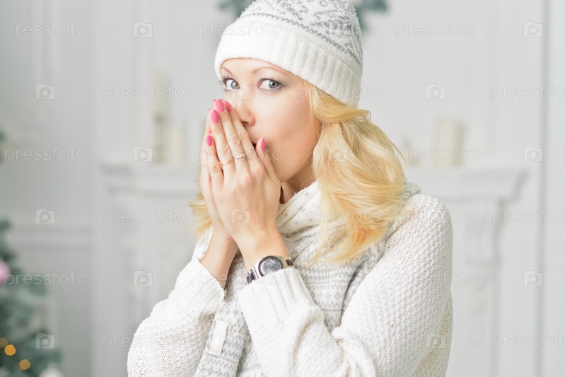 Светловолосая женщина на Новый год