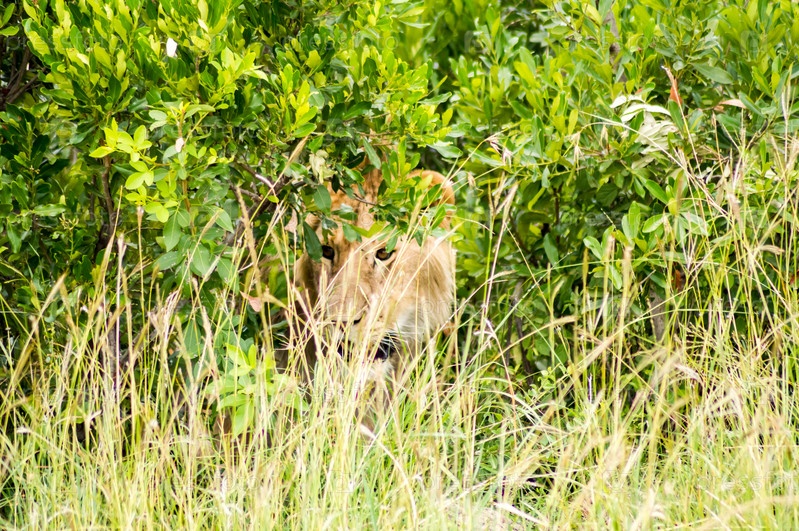 Молодой лев в кустах