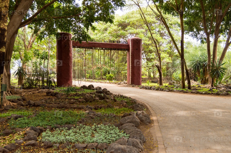 Охранные ворота с канатами на подъездной дороге в сельской местности парка Амбусели в Кении